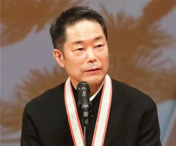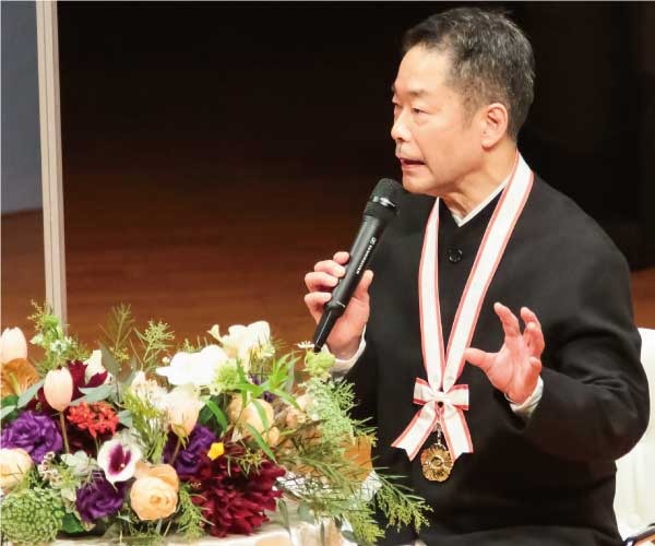 Today, with the presence of Their Imperial Highnesses Crown Prince and Princess Akishino, I would like to appreciate deeply for holding this award ceremony. I am honored to receive the Grand Prize of the Fukuoka Prize and I would like to express my deepest gratitude to all of whom involved in the screening process, to the city of Fukuoka, to the citizens of Fukuoka, for their long standing support for this award. For more than a half a century, I have been searching for the forms of expression using the Japanese type drum, but I have often felt that my work is not resonating anywhere in the society. It was like I was groping my way through the darkness.