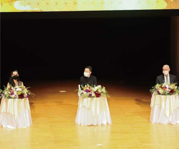The Fukuoka Prize 2022 Award Ceremony commenced with a spectacular opening image combined with magnificent music full of hope and projection mapping. To prevent the spread of COVID-19, overseas laureates participated online last year, but this year, all laureates could attend the ceremony in person for the first time in three years, Their Imperial Highnesses Crown Prince and Princess Akishino also attended the ceremony. The ceremony was held with invited guests only, to ensure thorough infection control measures.