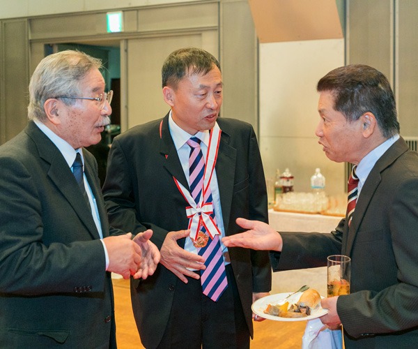 After the Award Ceremony, a celebration banquet was held, attended by distinguished guests from the various countries and representatives from various fields. Mr. ISOYAMA Seiji, Chair of the Fukuoka City International Foundation, declared the reception open by expressing the hope that everyone present would share in the joy of the Prize presentations and enjoy a heartwarming time. Next, Her Excellency Ms. CHEA Kimtha, Cambodian Ambassador to Japan, gave a speech on behalf of the distinguished guests, followed by a toast delivered by Mr. ISHIDA Masaaki, Vice Chairperson of Fukuoka City Council.