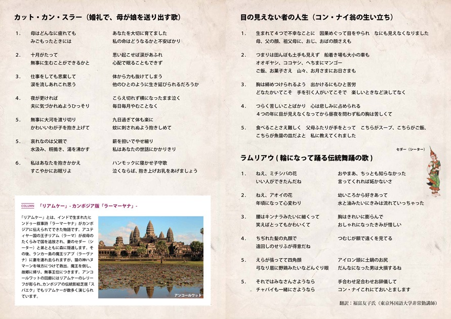Professor Terada described how, during a visit to Cambodia in 2005, he saw a newspaper article about Master Kong Nay that described him as "the Ray Charles of Cambodia", and immediately set out to meet him, and how he was moved by the musician's wonderful powers of expression. He then used photographs and recordings to give a commentary on Cambodian music.