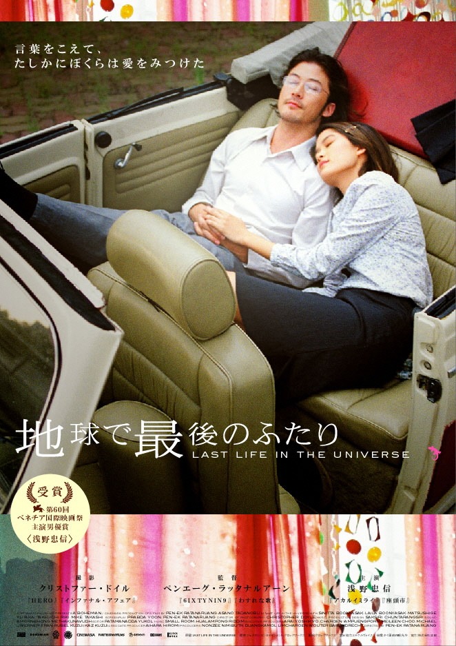 This tranquil love story, set in a Thai resort area, depicts the process of two people of different nationalities who meet after the death of each other’s siblings, as they become closer to each other with few words. Tadanobu Asano, who plays the lead character, received the Upstream Prize for Best Actor at the 60th Venice Film Festival. Other cast members include Sinitta Boonyasak and Yutaka Matsushige.