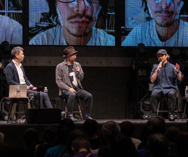 First, Fukuoka-based media artist Mr. Fujioka began by congratulating Mr. Manabe on his inspiring performance in the first part of the event. He discussed Mr. Manabe's artistic journey, highlighting how it evolved from the early years of his career to the present day. The conversation was lively as they delved into Mr. Manabe's rise to global fame, which began when he was among the first to stream his experiments with electrical stimuli on his face during YouTube's early days. They also discussed how he would move his body parts to produce sounds through motion-sound sensors. Other topics included Mr. Manabe's dedication to research and development, and they had a lively talk on his creative ideas, his inspiration, and his project's inner workings.
