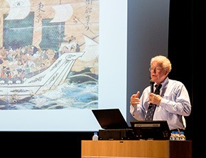 Prof. BLUSSÉ who is a historian and an expert of the Southeast Asian History, explained the situations and relations between each regions of East Asia in the era of Suminokura Ryoi and his son, François Caron, and Koxinga and his son who made an active role in the early modern East Asian maritime area. Then Prof. BLUSSÉ talked about the historical heritage which these entrepreneurs left with their actions.