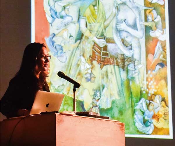 A representative team of students asked Ms. Sikander questions during the latter half of the session, and she talked about how she came to the U.S. from her native Pakistan and what was most important in her life. Afterwards, the students and Ms. Sikander engaged in an enthusiastic exchange of views on a number of topics, including the gender disparity issues facing female artists and the inequalities experienced by the politically and economically disadvantaged.
