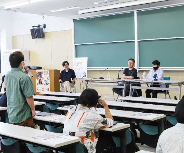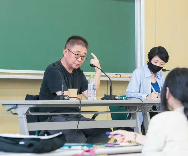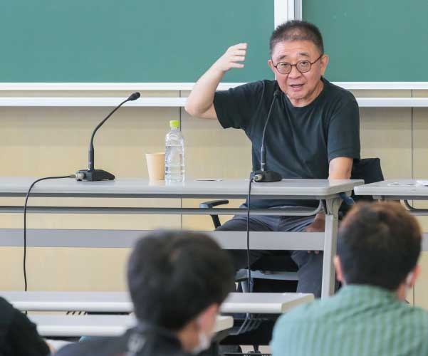 Mr. Zhang held a lecture titled Essence of Filmmaking for students majoring in film studies. The lecture was held in a dialogue format with Mr. Zhang answering questions from Professor Kuroiwa Toshiya of Kyushu Sangyo University. The session started with Professor Kuroiwa introducing Mr. Zhang's movies as “highly artistic and original works where time and space fantastically overlap,” before deciphering the film director’s views of the world.
