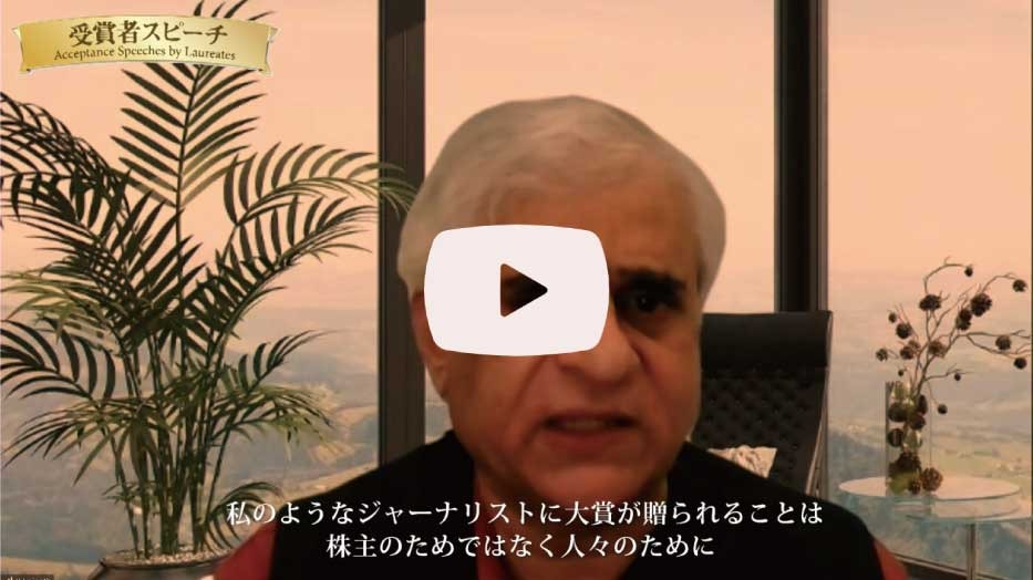 This is an incredibly proud moment for me to receive and accept the Fukuoka Grand Prize, one of the most prestigious awards that I know of. For me, it is a vindication of the social role that journalism can and ought to play. At a time in the COVID-19 pandemic when the public have needed journalism more than ever before, but the media have served the public less than ever before. Tens of thousands of journalists and non-journalist media workers have been laid off by commercial media houses who, as always, prize profits above people. In the absence of rigorous and systematic media coverage of what is happening to the health and livelihoods of the less privileged sections of society, rumor and misinformation ruled the world. So, when an award like the Fukuoka Grand Prize is given to someone like me, I see that as a vindication of a journalism that serves people, not shareholders; communities, not corporations. I will truly treasure this award. I am happy to accept and dedicate this award to fellow journalists fighting immense odds to report on and help millions of the rural, marginalized, devastated by the pandemic, whose stories need to be told. Particularly, I dedicate it to my colleagues at the 'People’s Archive of Rural India'(PARI) who continued to report from the ground on the migrants, the workers, the farmers, the landless, the artists and the artisans, the fisherfolk and the destitute. In a world witnessing the retreat of the rural everywhere, they give me hope. My sincere thanks to the people and City of Fukuoka for this great honor. Thank you.