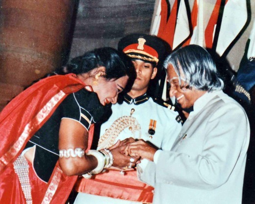 Dr. Teejan Bai has received many honors including the Padma Shri conferred by the President of India, and the even more prestigious award given by the government, the Padma Bhushan, and honorary degrees from several local universities. She is often invited to give performances abroad. However, all these honors have not changed her way of living; she devotes herself to her beloved Pandavani, but continues to work at the local ironworks when she is free.