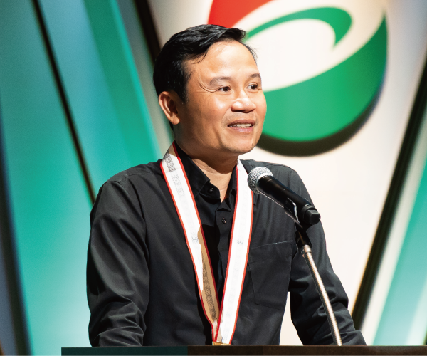 この賞は、私一人の成果ではなく、これまでの歩みを思い出させてくれるものです。今日の成果は、日本政府の奨学金で日本に留学した十年間のおかげです。その間、すばらしい先生方と出会い、すばらしい教育を受け、そして豊かな文化の中で学ぶことができました。
