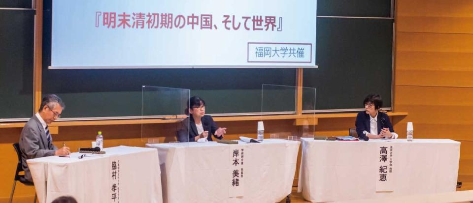 岸本氏と学術的な交流を長年続け、近世フランス社会史・都市史を専門とする高澤紀恵氏との対談が行われました。高澤氏は現在、他地域との比較研究にも取り組んでおり、その活動の原点は岸本氏との若い頃の出会いであるとし、「他領域の研究者と話すことは、思わぬ所からボールが飛んで来てその方向を見上げる感覚と似ています。これまで見えてなかったものに気付く、固定化されたイメージが変われるかもしれないのが刺激的です」と語りました。今回は、岸本氏がその研究で、一貫して問いかけている「秩序」を巡っての対談となりました。現代の日本社会では“あって然るべき”と考えられている「秩序」が、近世フランスや明末清初期においてどのように捉えられているか、脇村氏の専門であるンド社会経済史、アジア経済史での見解を交えながら対談は展開していきました。さらに身分や宗教が「秩序」を形作るのに果した役割といった視点からも比較。岸本氏は「自分達の文化の外の広い世界を知って討論し、社会を見直す。知識を皆で共有し、話し合いながら見直していく足掛かりの一つになれば、と考えています」と語り、時間が足りないほど盛り上がりを見せた対談は閉幕となりました。