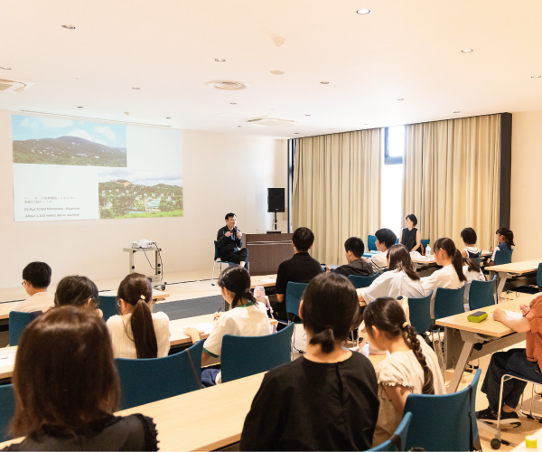 芸術・文化賞受賞者である建築家、ヴォ・チョン・ギア氏を迎え、自身が手がけた建築の紹介に加え、ギア氏が実践を続けている瞑想活動に地元の小学生がチャレンジする体験授業を開催。参加した子ども達からは「ギアさんの建築をいつか自分の目で見てみたくなった」という声や「初めての瞑想で気持ちよくなったので今度から家でもやってみたい」といった感想が寄せられました。