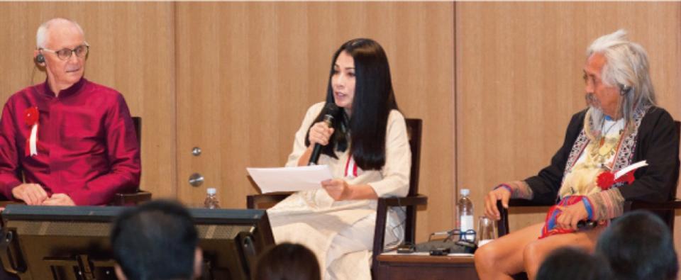 映画作家で文化観察者のキドラット・タヒミック氏(フィリピン)は、フィリピン・ルソン島北部の山奥で暮らすイフガオ族の生活を紹介。三千年前、イフガオ族は「森の精霊」や「聖なる風の神」を敬い、森、里山などの「自然」と調和をとって生活をしてきた。しかし、入植者の出現をきっかけとして、子どもたちはチェーンソーを手に取るようになり、森の木々を伐採するようになったと説明。我々人間は、古くからある文化に一度立ち返る必要があると客席に訴えました。
