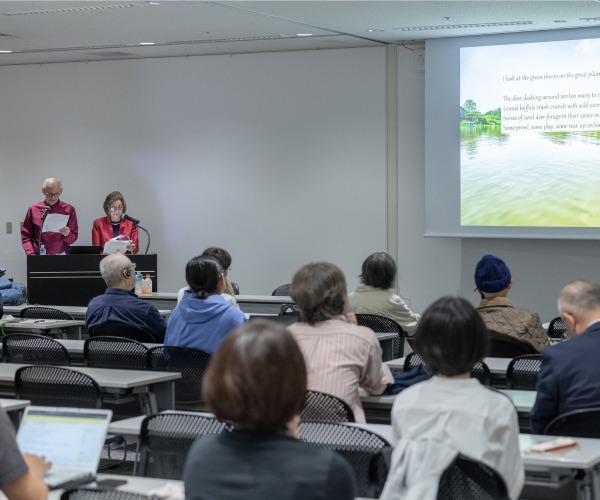 講演は、約500年前にタイ語で書かれ、 多くの謎に包まれた4つの長編詩について語られました。湿気が多いタイの風土により原作は残らず、タイトル、著者、時代、誰のため、何のために書いたのか不明である詩を、両氏は全て英訳し、より多くの人に、その感動と驚きを与えました。