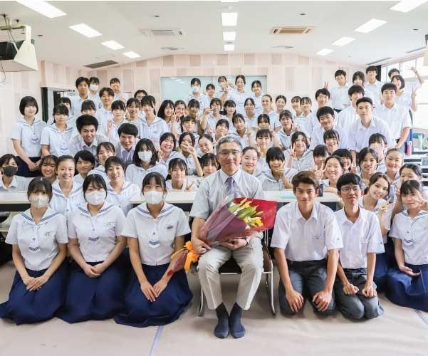 最後に生徒代表からお礼と感想が伝えられ、花束贈呈では温かい拍手が沸き起こりました。親しみやすい笑顔と熱意あふれる語り口で、人を惹きつける魅力を持つトンチャイ氏。国際的な政治問題に対する関心を高め、生徒たちの視野を広げる有意義な授業となりました。