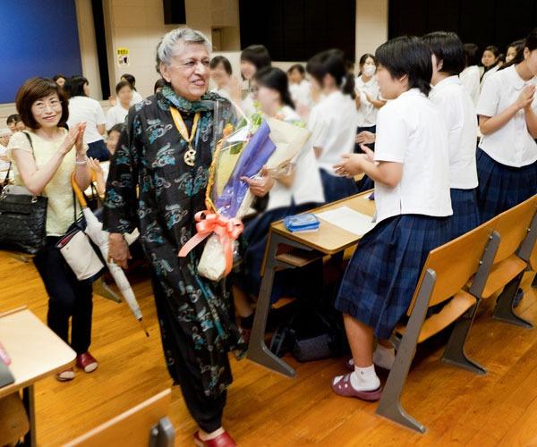 2016年度、芸術・文化賞受賞のヤスミーン・ラリ氏が、福岡アジア文化賞公式イベントの一環として、福岡市内にある福岡市立福岡女子高等学校を訪問しました。