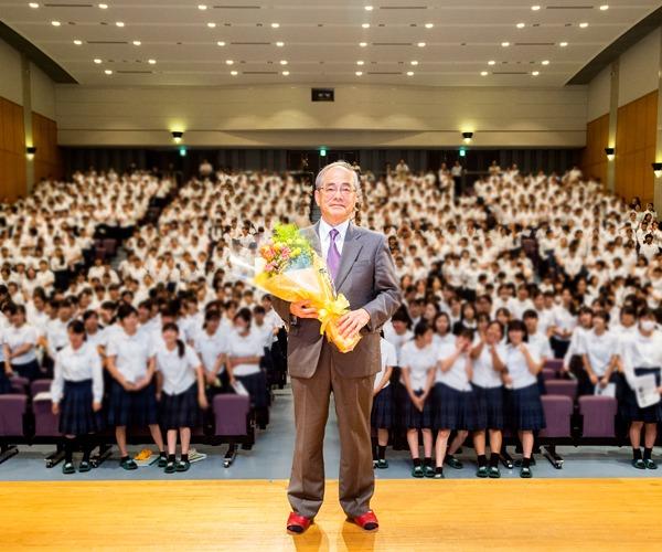 2018年、学術研究受賞の末廣昭氏が、福岡アジア文化賞の学校訪問の一環として、福岡市西区にある福岡女子高等学校を訪問しました。