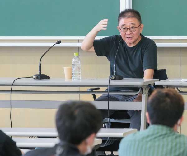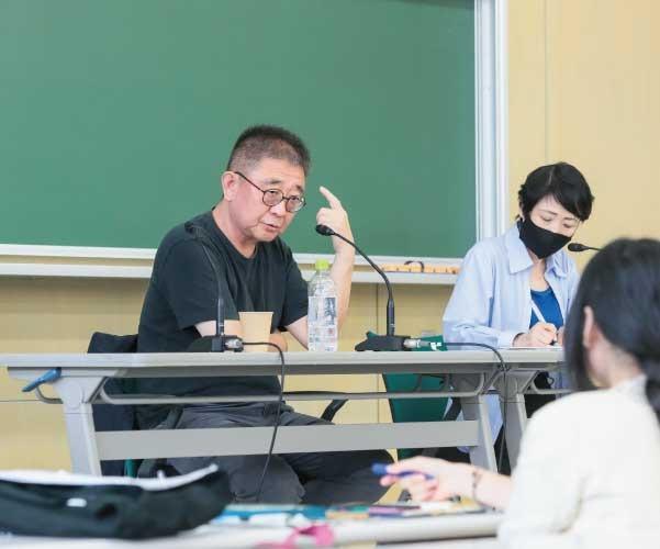 映像関係を専攻する学生に向けて、「映画制作のエッセンス」をテーマに開催された講演会。同大学の教授・黒岩俊哉氏の質問に、張氏が応える対談形式で進められました。はじめに黒岩氏が、「監督の映画には独自のスタイルがあり、時間や場所が幻想的に交錯する芸術性の高い作品」と紹介し、張氏の世界観をひもといていきました。
