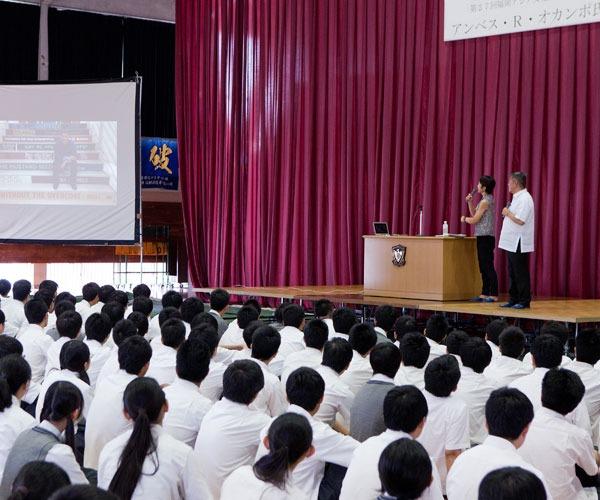 2016年度、学術研究賞受賞のアンベス・R・オカンポ氏が、福岡アジア文化賞公式イベントの一環として、福岡市内にある上智福岡中学高等学校を訪問しました。