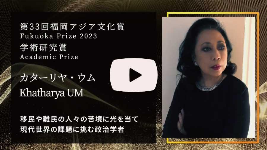 自らの経験を踏まえ、カンボジアの内戦と大虐殺の歴史を掘り下げつつ、新たな研究領域を切り拓くウム氏の研究は、不確実性を増す現代世界において、その一層の重要性を獲得している。今日のいくつもの難題を乗り越えるために、協力して知を革新し、若者の啓蒙に尽力し、国境を越えた市民の絆を築こうとするカターリヤ・ウム氏は、まさに「福岡アジア文化賞 学術研究賞」にふさわしい。