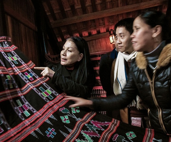 この間、伝統工芸である絹織物を自らの作品に活用することで甦らせ、少数民族に継承された刺繍や織物をデザインに取込み、現代的な感覚で大胆な色彩や柄の構成を追求した。それは単なる伝統の踏襲ではなかった。ミン・ハン氏は台頭する欧米ファッションの影響を意識的に相対化しながら、ベトナム固有の衣服文化と手仕事の技を再評価し、多彩で豊かな創造的デザインを生み出している。