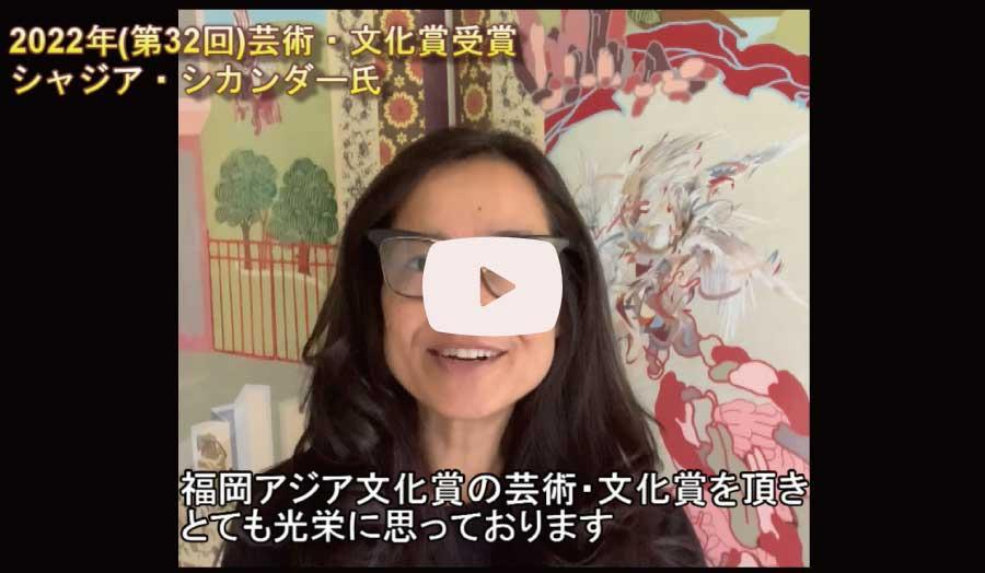 世界が抱える困難な課題を、南アジアの伝統を踏まえ刷新しつつ、今日的な造形によって暗喩的に描き出し、国際的に高い評価を得るシカンダー氏の表現世界は、アジアの若手作家たちを鼓舞している。このように南アジアの代表的な女性アーティストとして意欲的な活動を続けるシャジア・シカンダー氏は、まさに「福岡アジア文化賞 芸術・文化賞」にふさわしい。