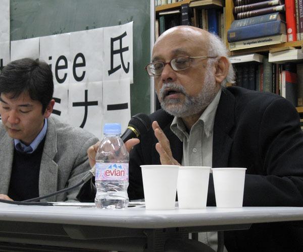 パルタ・チャタジー氏はインド出身の政治学者・歴史学者で、アジアや途上国の視点から先鋭な問題提起を行ってきた。ことに、南アジアの民衆の歴史を掘り起こそうと試みた「サバルタン研究(the Subaltern Studies)」の中心に立ち、それまで顧みられなかった「民衆の政治」という領域を明らかにするために、「ポストコロニアルな批判」を提起したことで 知られている。