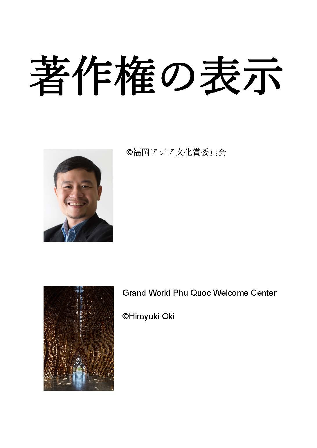 ご利用の際は必ず「©福岡アジア文化賞委員会」の表記をお願いします。 (「©福岡市」ではありませんので、ご注意ください。) 著作権等に関してはサイトのご利用についてをご一読ください。